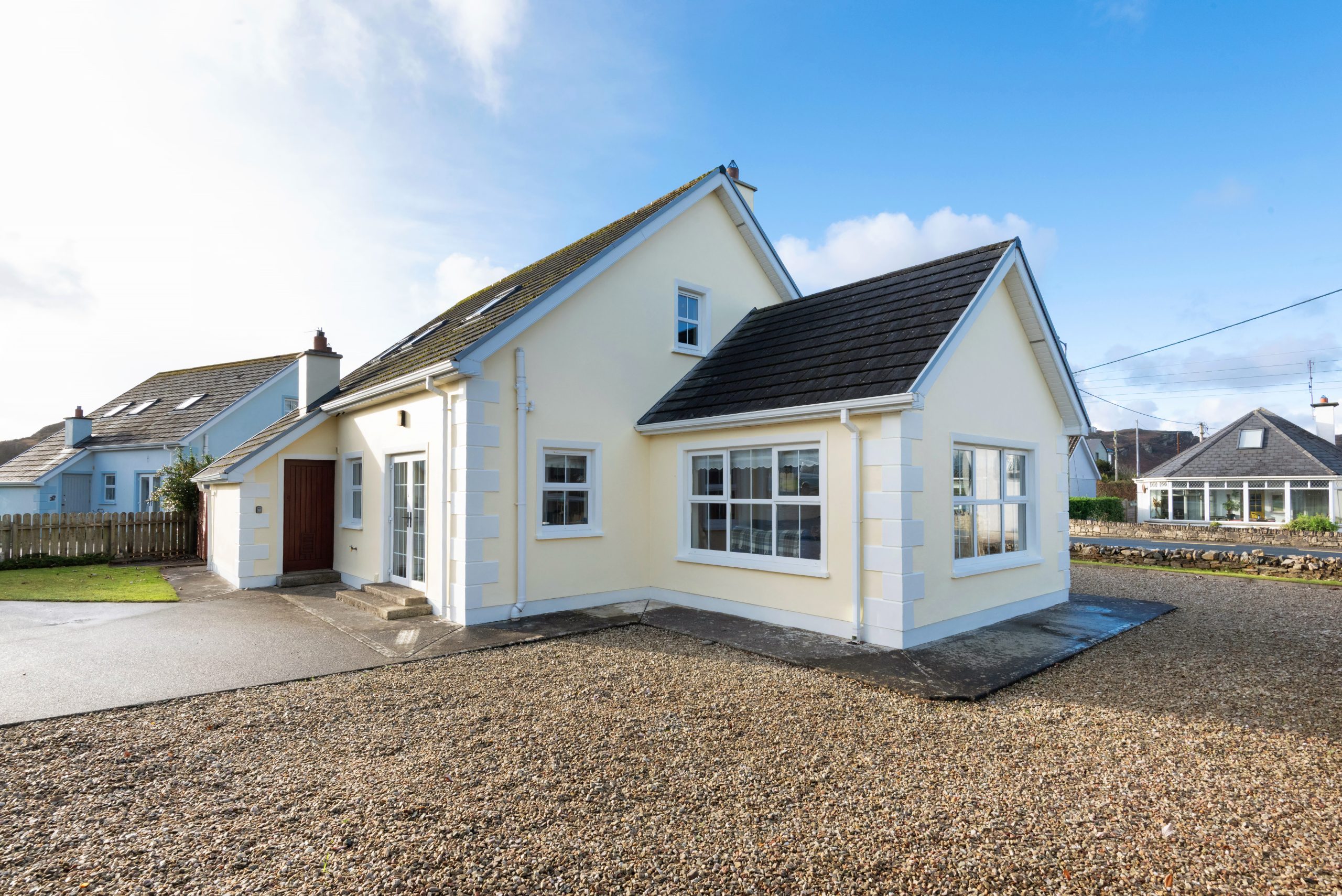 This four-bedroom detached property is situated in a quiet cul-de-sac of only 5 properties. The property is a short walk from Portnablagh pier and a five-minute drive from Dunfanaghy village. The property has the benefit of two downstairs bedrooms and a large sunroom to the side. It is suitable as a holiday home or a full-time residence.